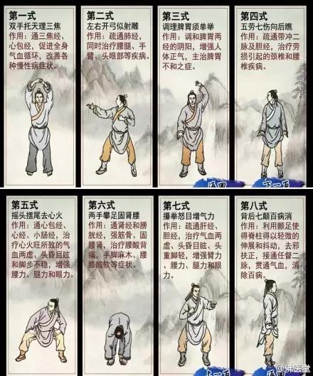 而八段锦是优秀的中国传统保健功法,属于佛医三疗七修体系里面的功疗之一。八段锦歌诀:“两手托天理三焦,左右开弓似射雕。调理脾胃须单举,五劳七伤望后瞧。摇头摆尾去心火,两手攀足固肾腰。攒拳怒目增气力,背后七颠百病消。”通过八段锦锻炼可改善不良心理状态,疏通经络气血,具有保精、养气和存神的作用。